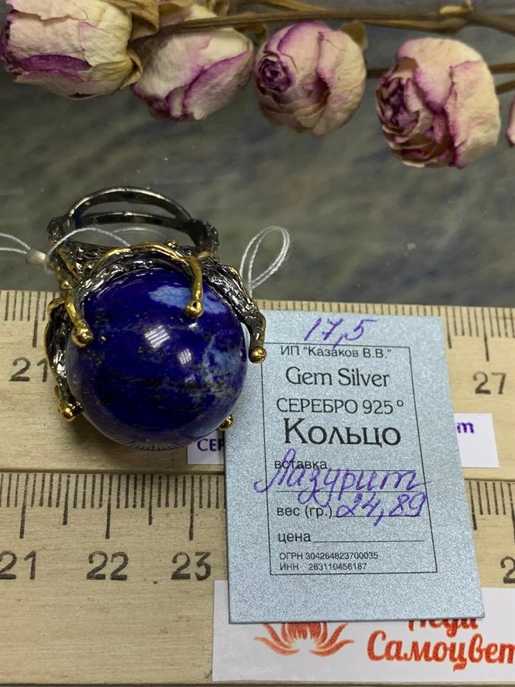 *Кольцо р.17,5 Лазурит АРТ 60034 ВЕС 24,89 Г