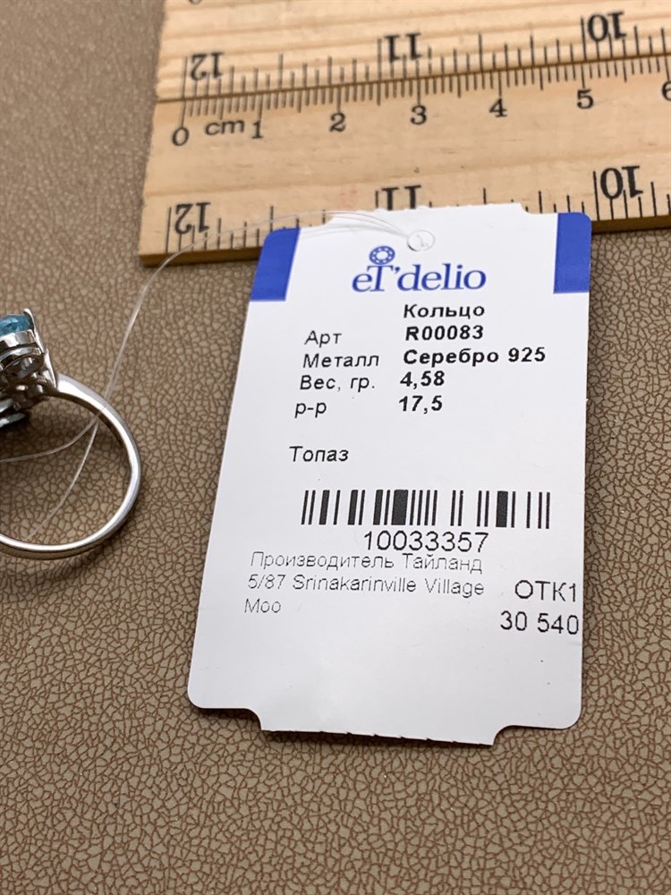 *Кольцо р.18 Голубой Топаз арт. R00219-749 Вес 4,07 г