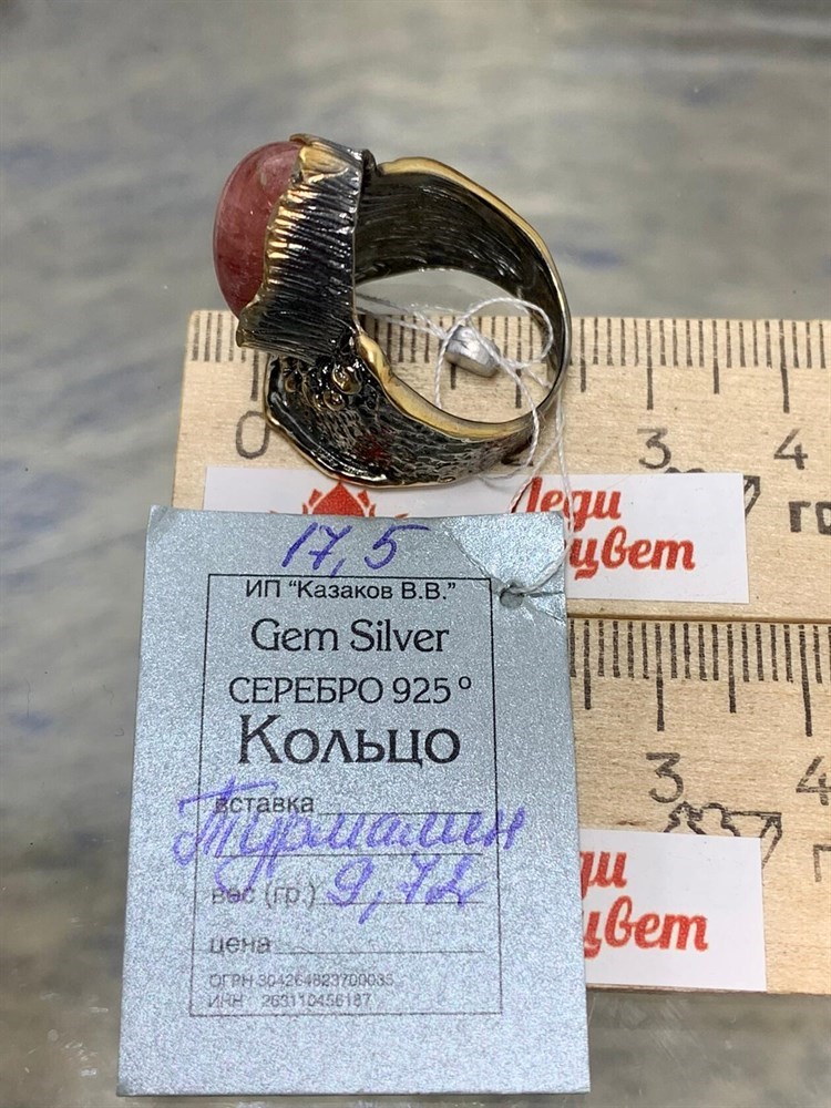 *Кольцо р.18,5 Турмалин Малханское Месторождение АРТ 47142 (ВЕС 11,89 Г)