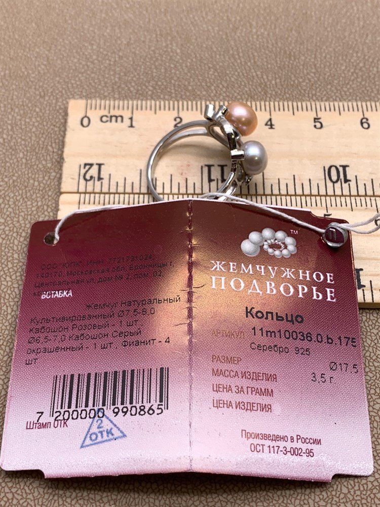 *Кольцо р.18 Жемчуг Микс д.6,5*7 д.7,5*8мм арт. 1.0036.0.b-872 Вес 3,63 г