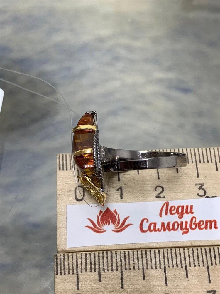 *Кольцо р.17-19 Янтарь арт. 41030100619-785 (Вес 8,64г)
