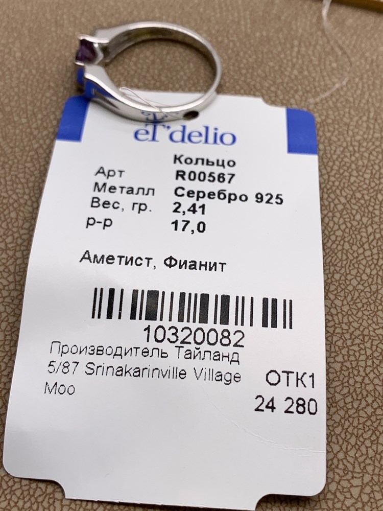 *Кольцо р.17 Аметист арт. R00019-978, (вес 3,78 г)