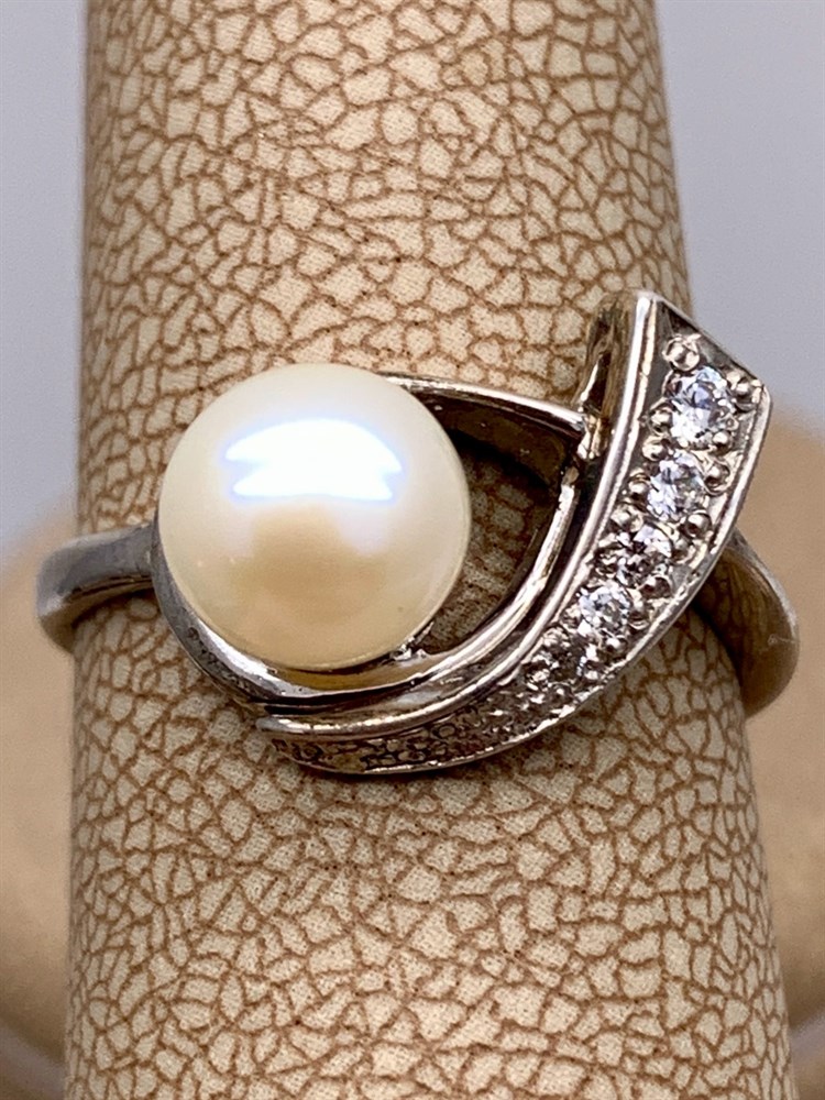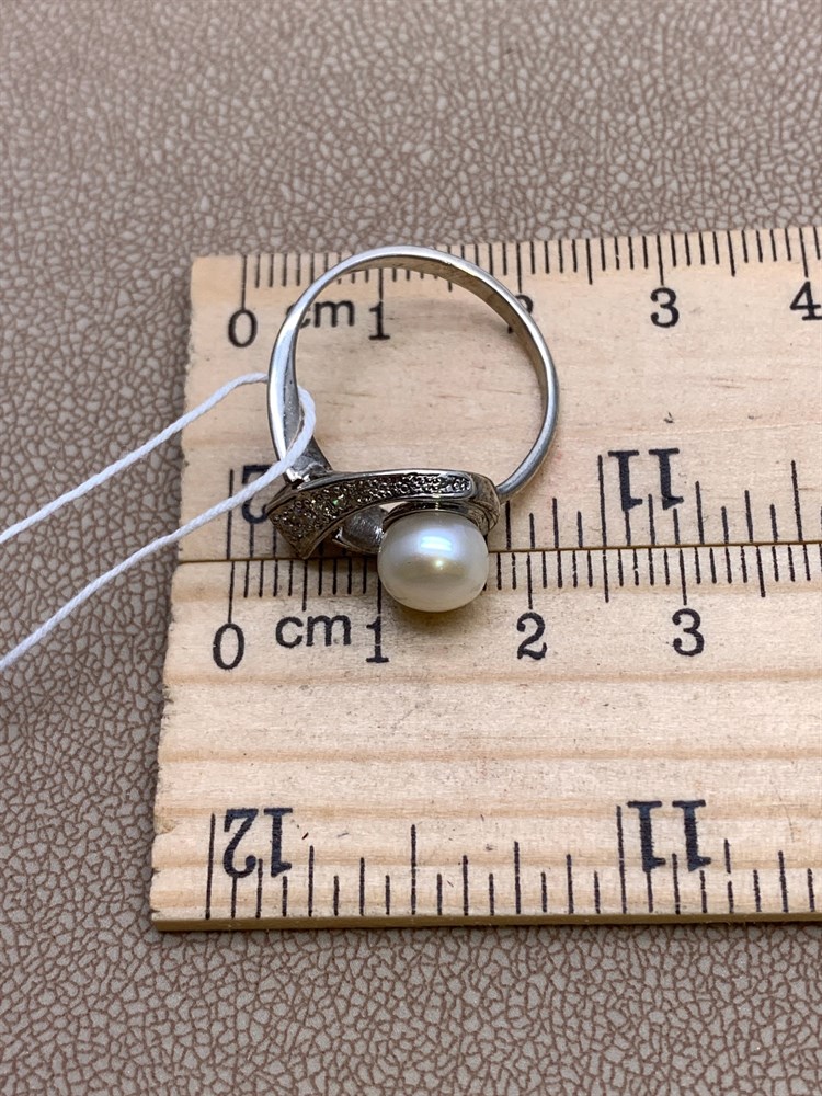 *Кольцо р.18,5 Белый Жемчуг д.7*7,5мм арт. 1.0106.0.b-372 Вес 4,84 г