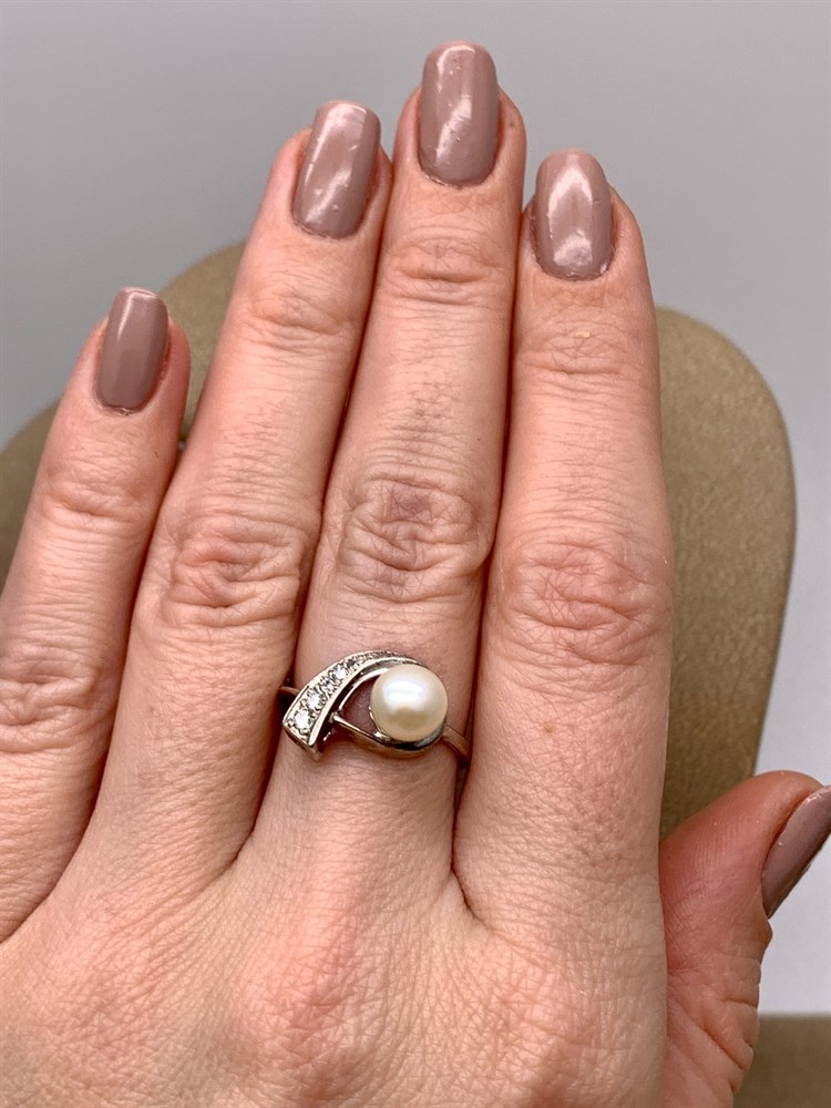 *Кольцо р.17,5 Белый Жемчуг д.45*5 д.5,5*6 д.6*6,5 мм арт. 1.0393.0.b-693 Вес 1,97 г