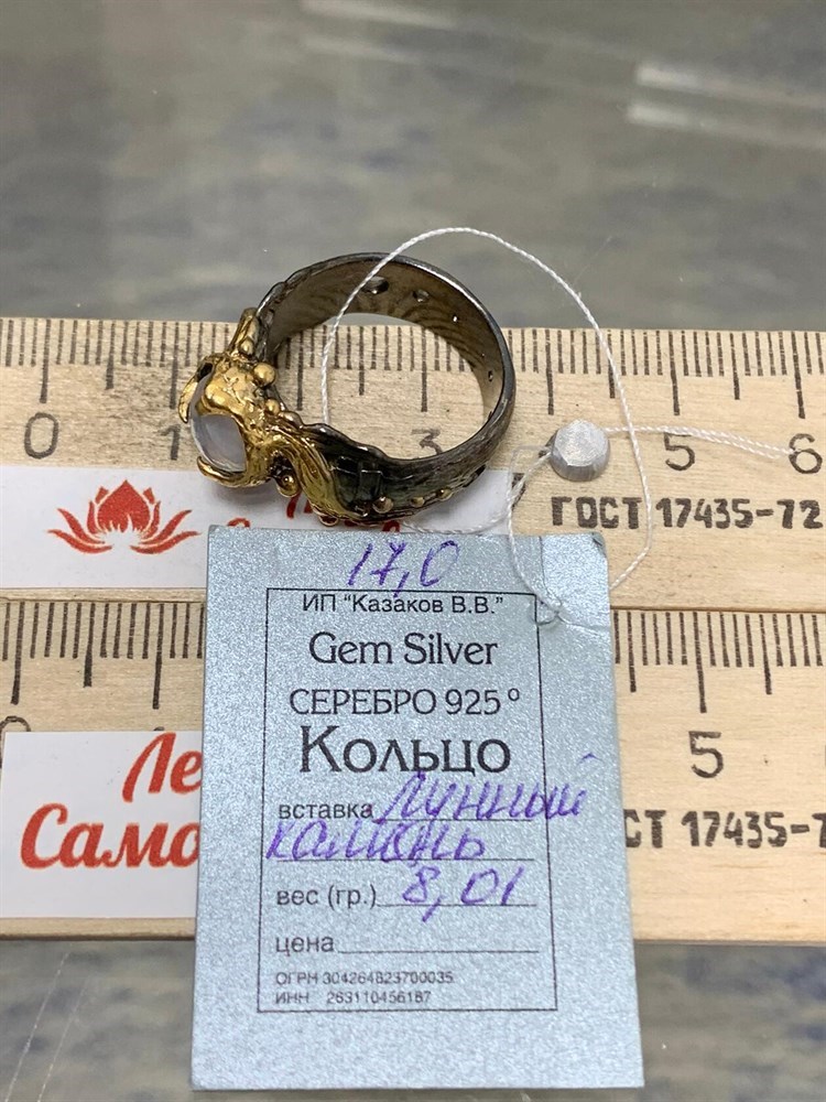 *Кольцо р.17 Лунный камень Адуляр АРТ 60434 ВЕС 8,01 Г