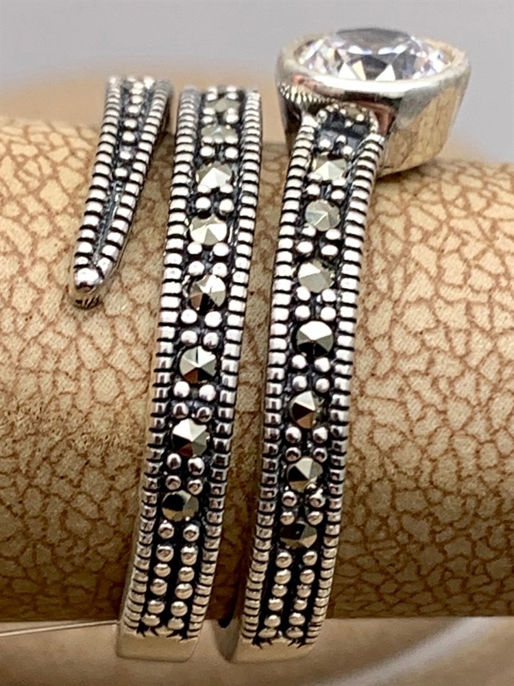 *Кольцо р.19 Змейка Марказит Белый Фианит арт. HR1318-769 вес 5.37 г