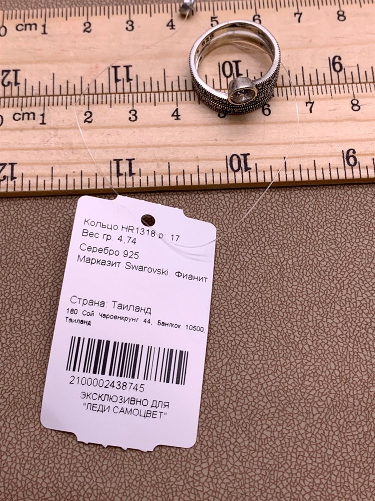 *Кольцо р.18 Микс Марказит Белый Фианит арт. HR1631-783 вес 4,14 г