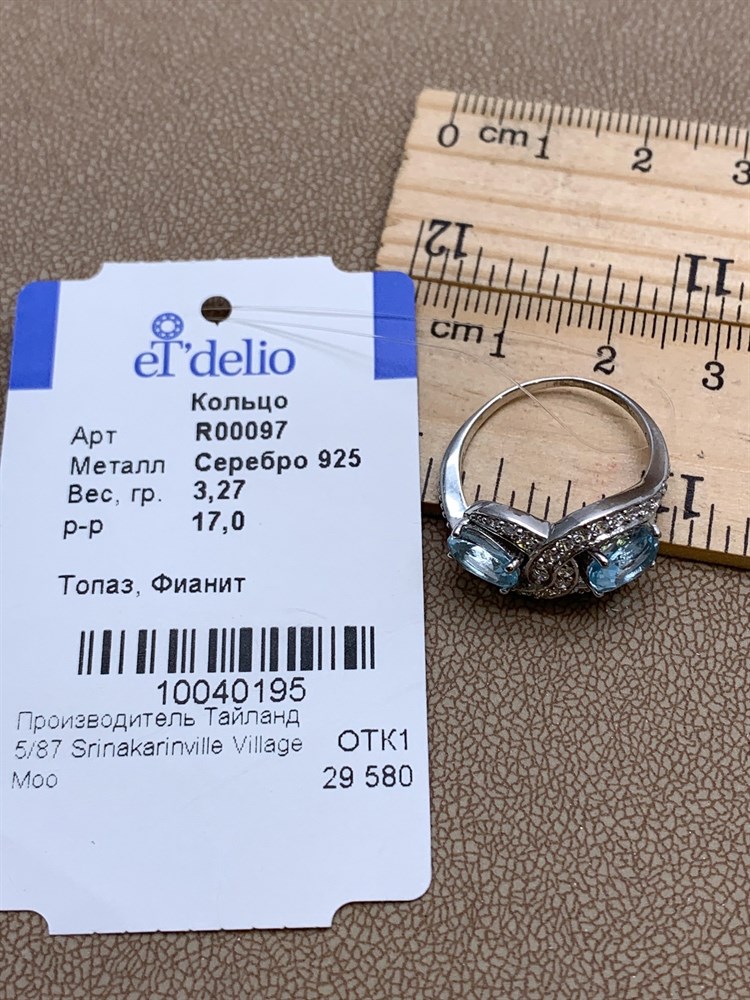 *Кольцо р.17 Голубой Топаз арт. R00504-615 Вес 3,59 г