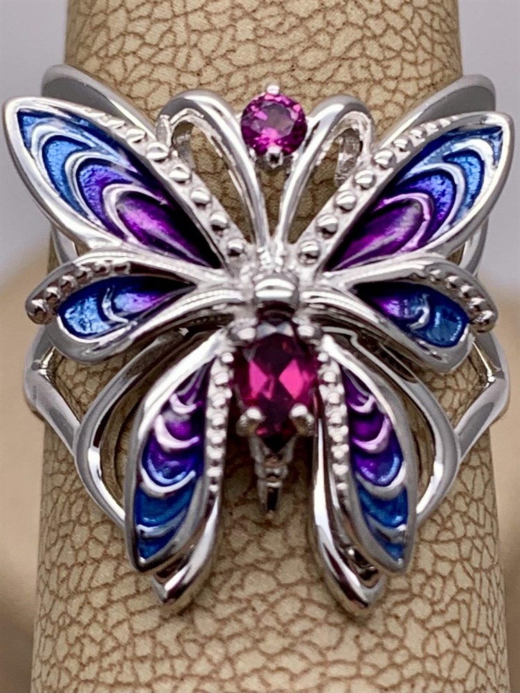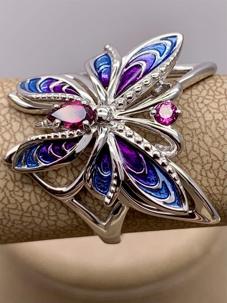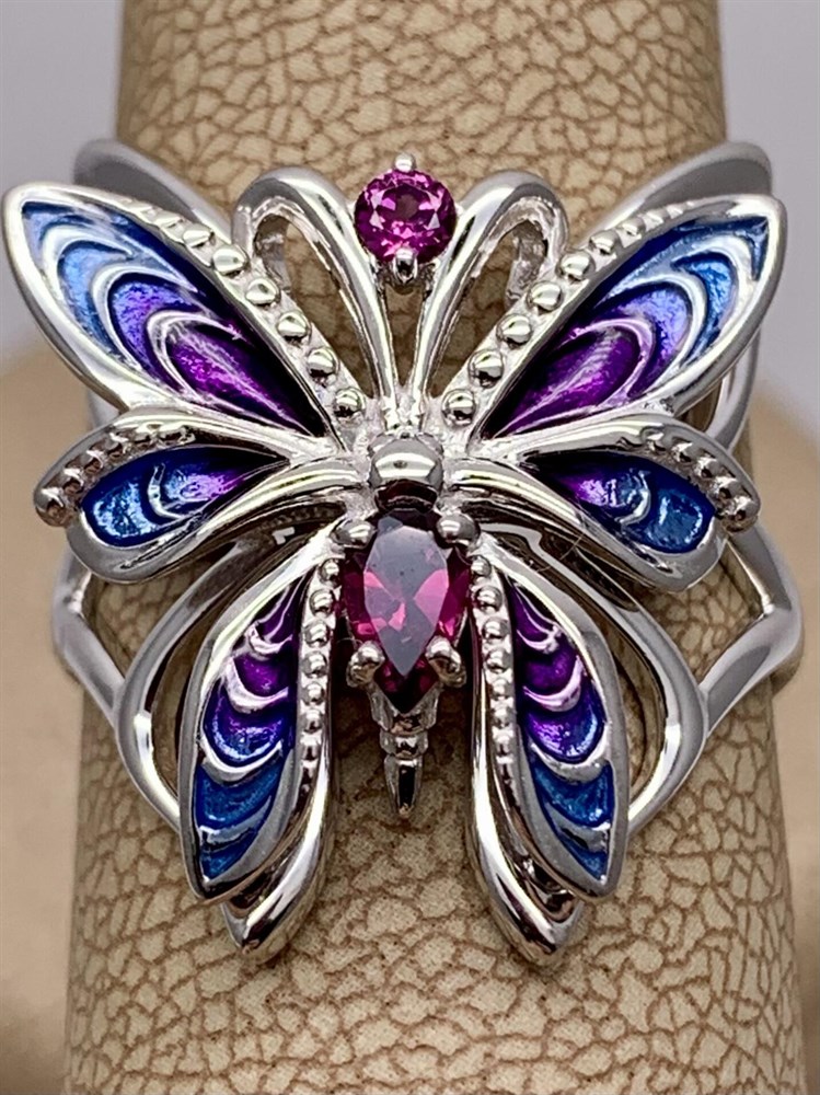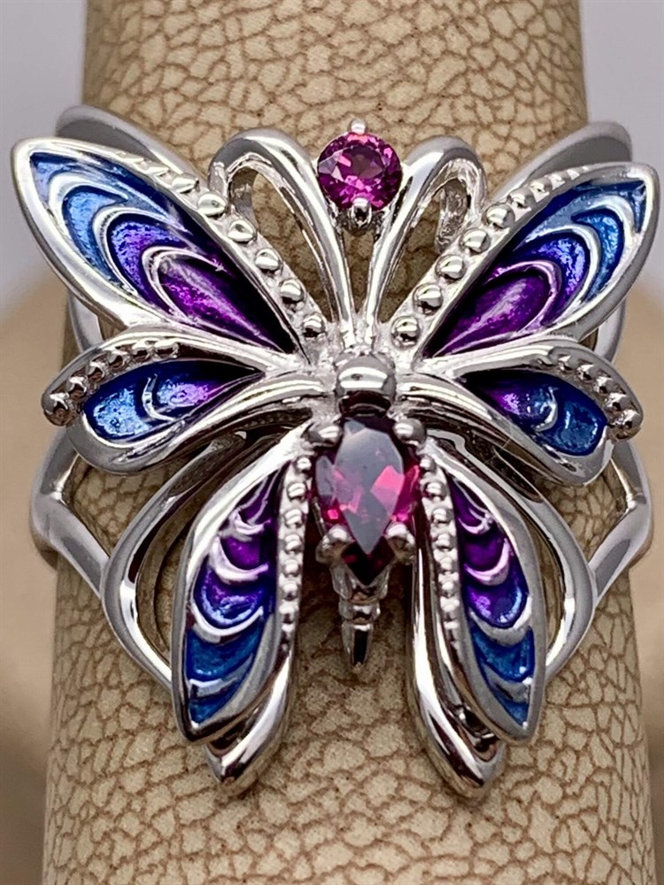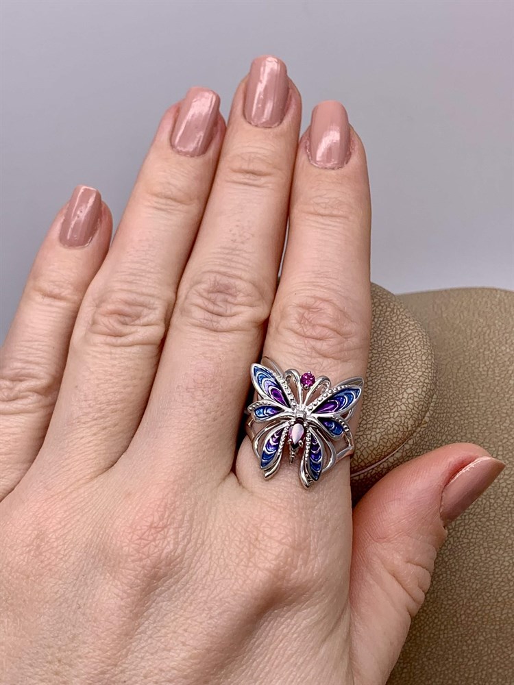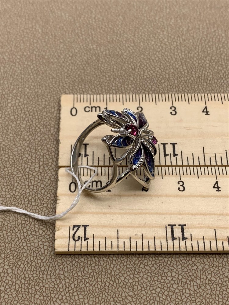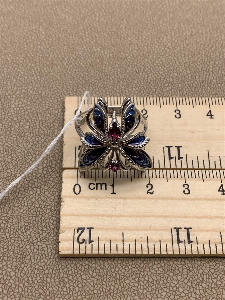 *Кольцо р. 18,5 Бабочка Гранат Родолит Эмаль арт. 01-5484-00-204-0200-69-714 вес 4,81 г