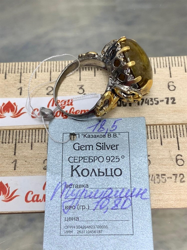 *Кольцо р.18,5 Турмалин Малханское Месторождение АРТ 47142 (ВЕС 11,89 Г)