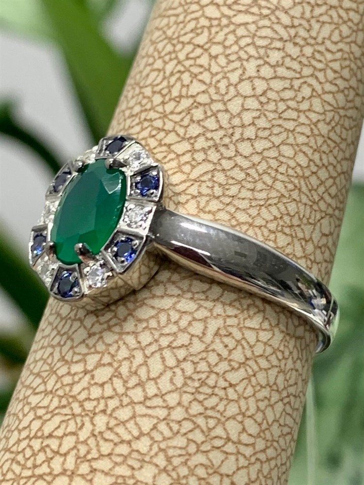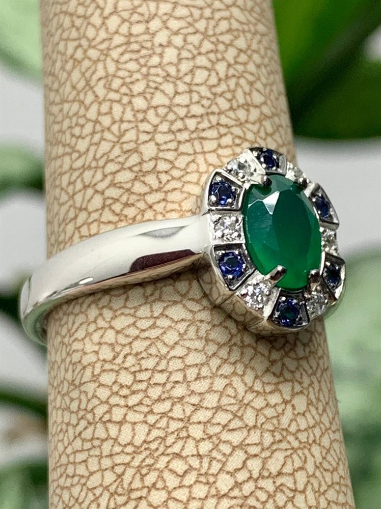 *Кольцо р.17,5 Микс Зеленый Агат Черный Фианит арт. К1037Ю/Ag-617/10/ПОЗ-509 вес 3,26 г