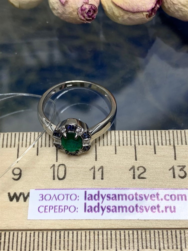 *Кольцо р.18 Микс Зеленый Агат Черный Фианит арт. К1037Ю/Ag-617/10/ПОЗ-726 вес 2,89 г