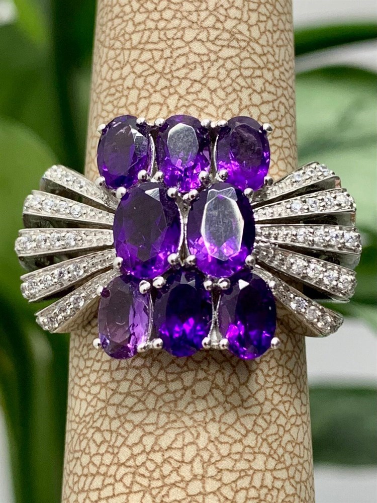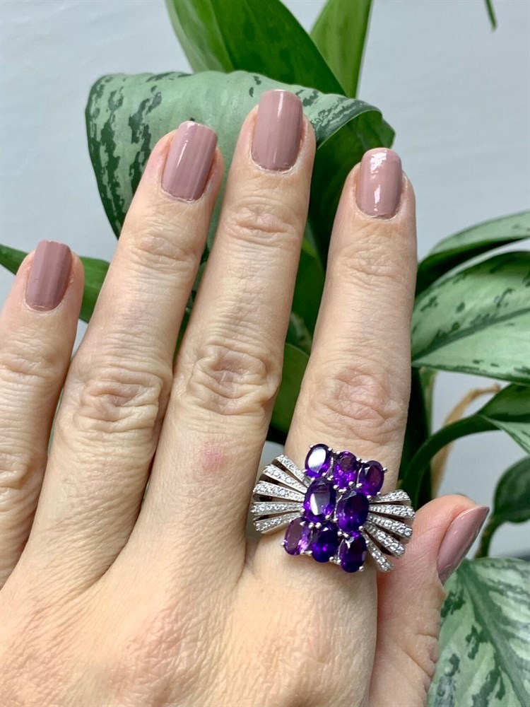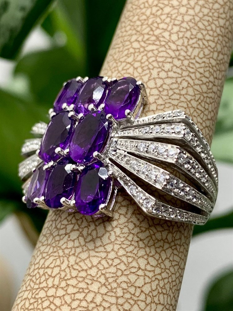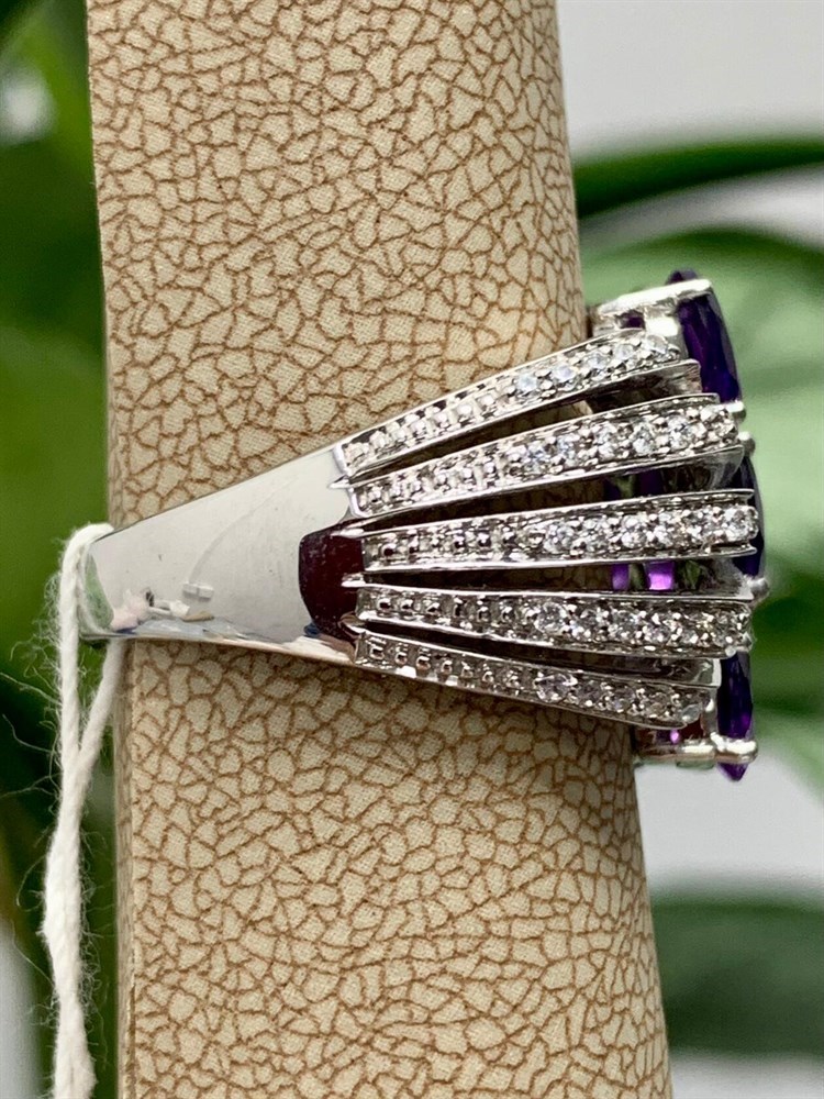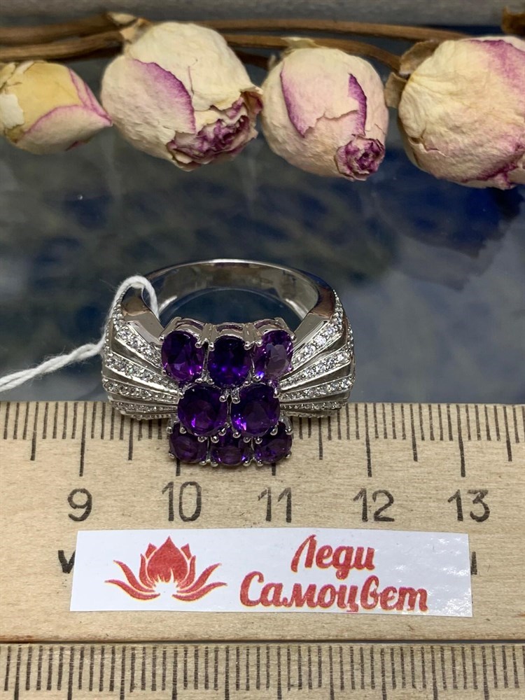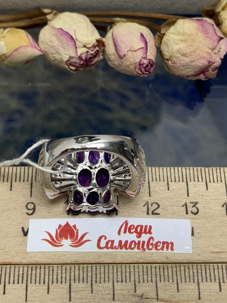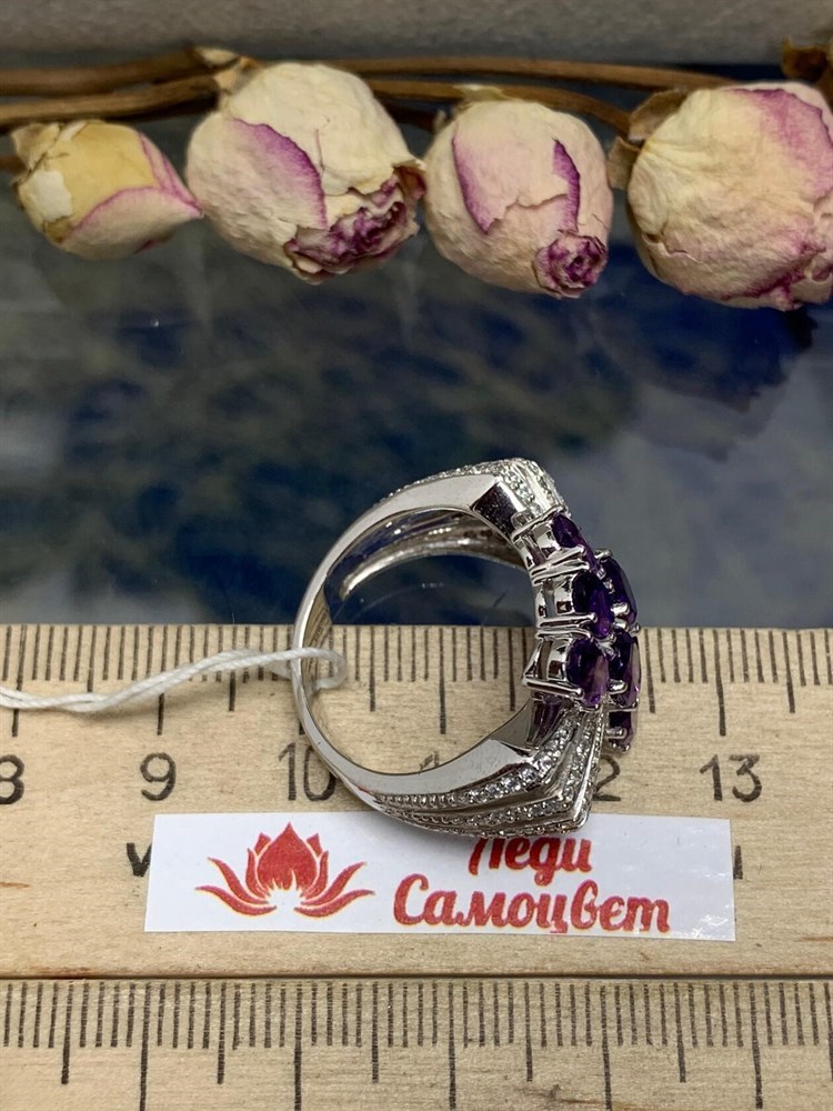 *Кольцо р.18,5 Фиалка Аметист арт. AS-R06598-X-W-Pur-X-W-978 вес 4,2 г