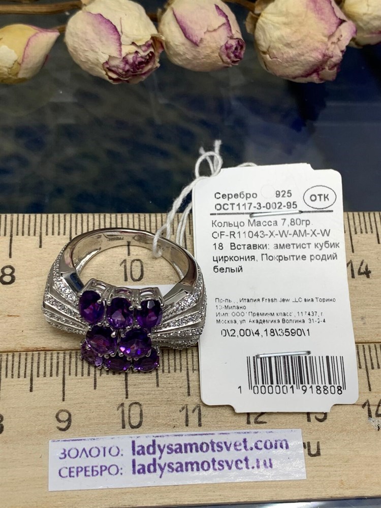 *Кольцо р.18 Фиалка Аметист арт. AS-R06598-X-W-Pur-X-W-289 вес 4,11 г