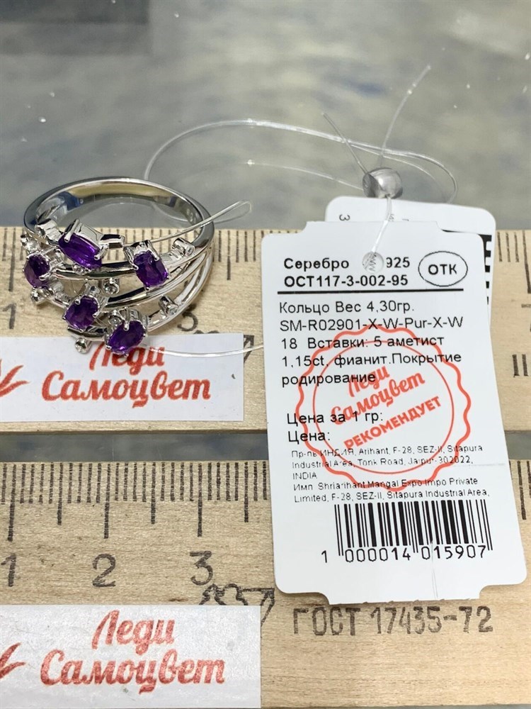 *Кольцо р.18 Аметист арт. SM-R02901-X-W-Pur-X-W-618 вес 4,3 г