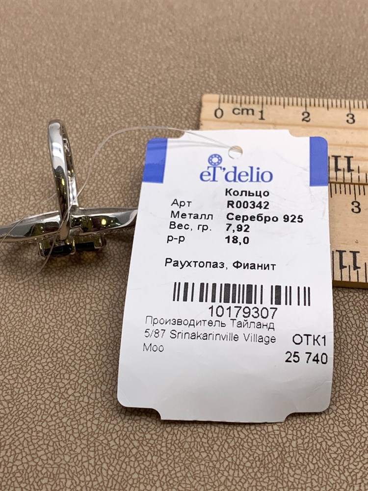 *КОЛЬЦО р.18 Раухтопаз Дымчатый Кварц арт. R00342-307, (вес около 7,92 г)