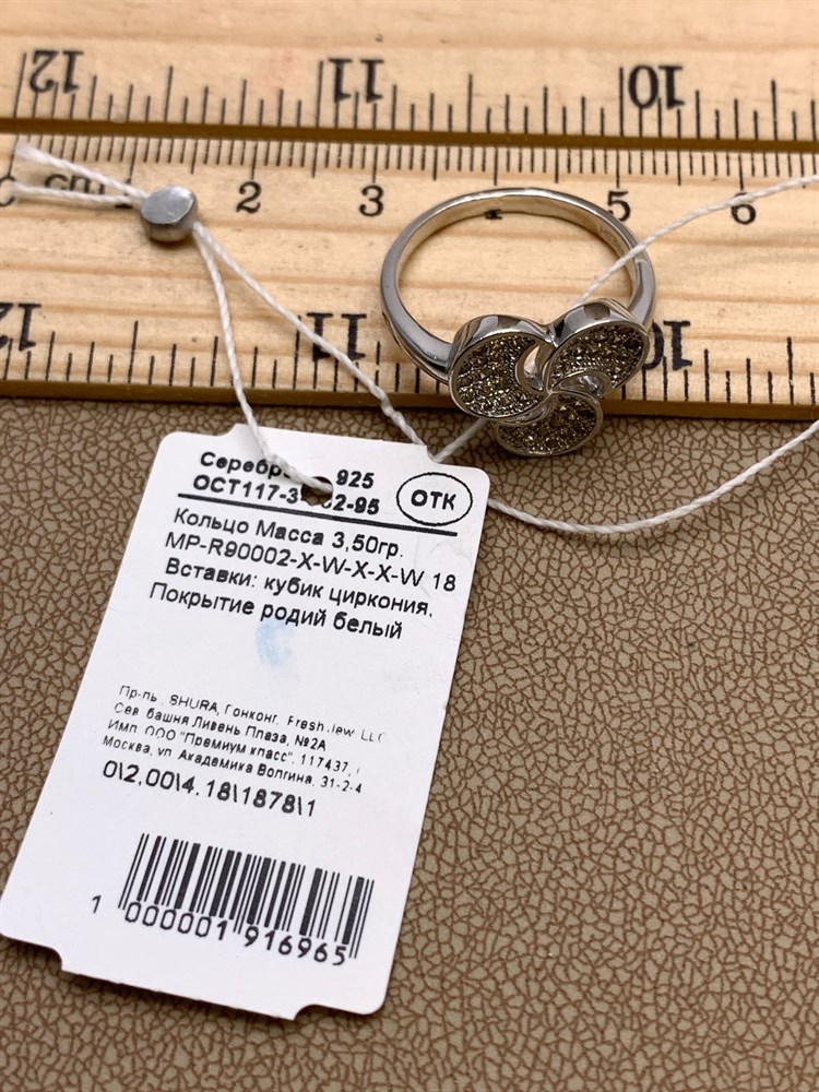 *Кольцо р.18 Белый Фианит Микро Встави арт. MP-R90002-X-W-X-X-W-18-965 вес 3,5 г