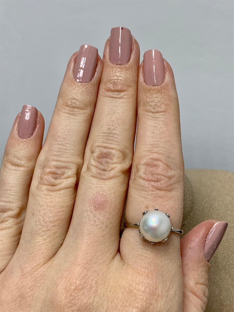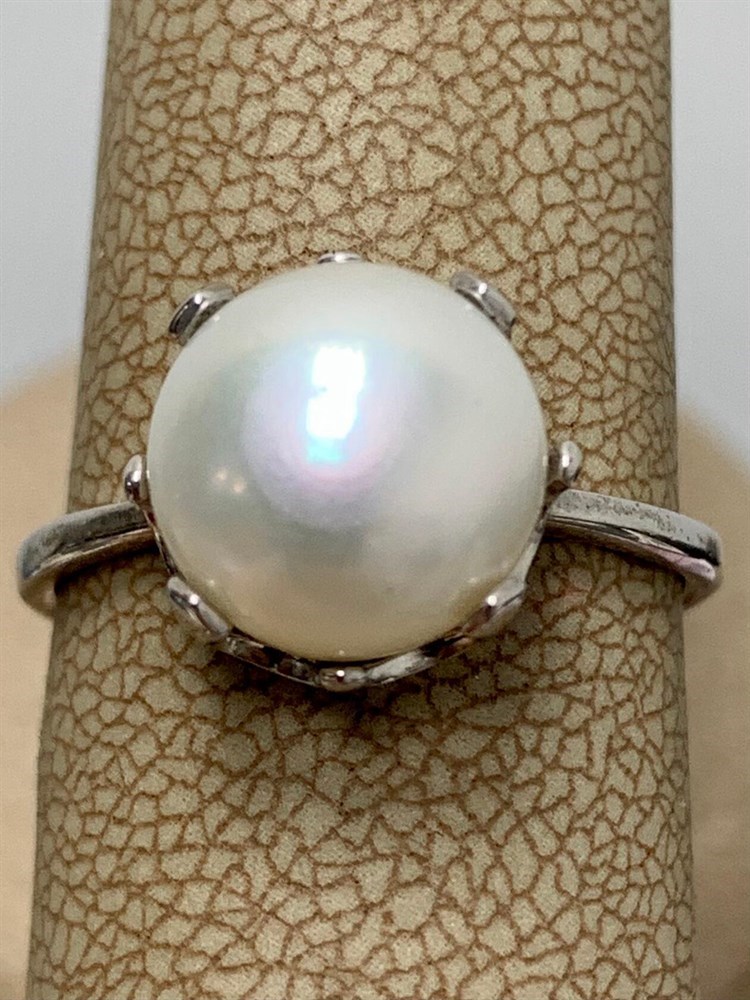 *Кольцо р.17,5 Белый Жемчуг д.10*10,5мм арт. 1.0325.0.b-917 Вес 6,08 г