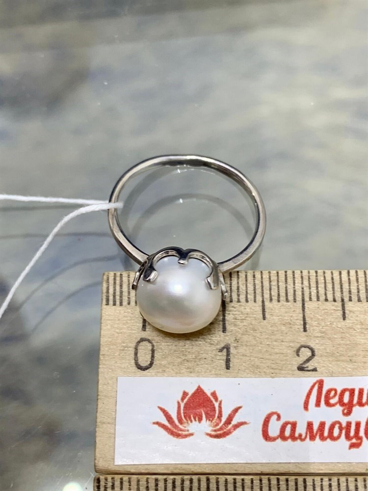 *Кольцо р.19 Белый Жемчуг д.10*10,5мм арт. 1.0325.0.b-551 Вес 5,89 г