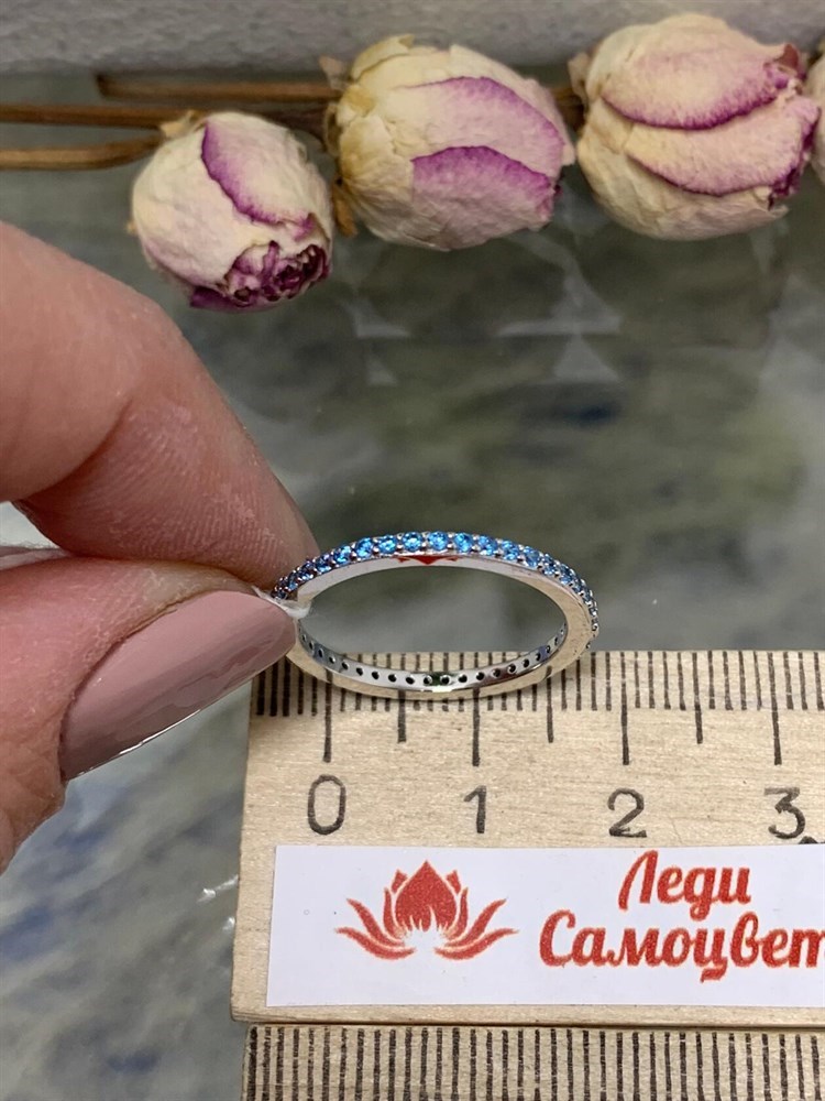 *Кольцо р.18 Голубой Фианит Микро Вставки арт. SL-R01312-X-W-X-X-BT-821 вес 1,19 г
