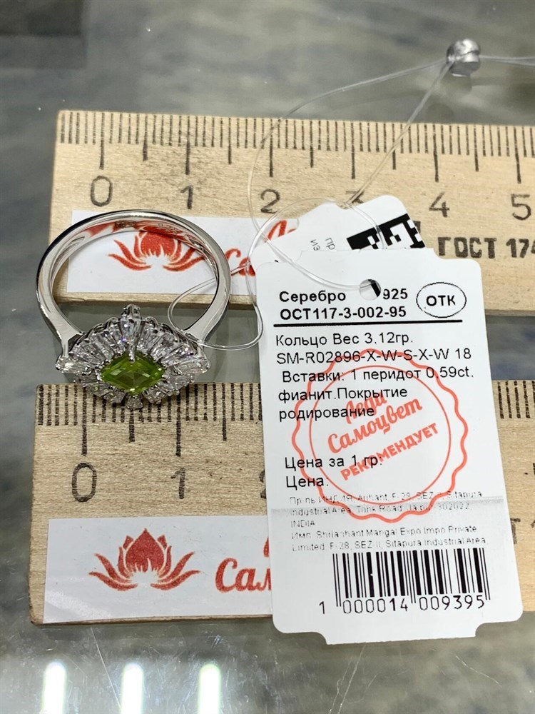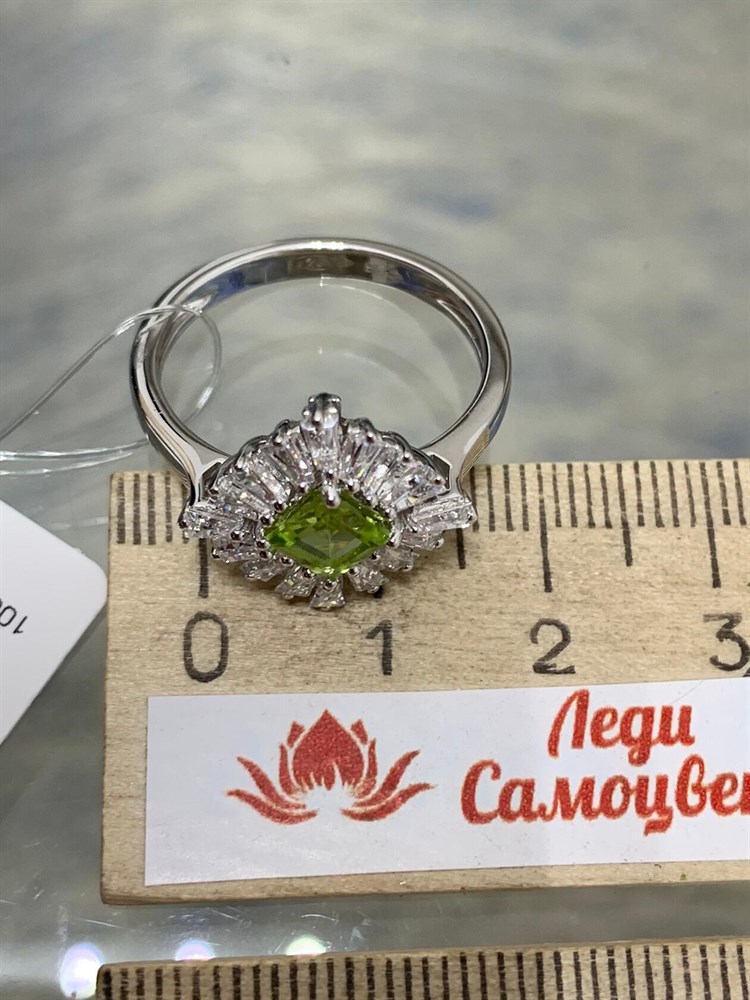 *Кольцо р.18 Хризолит арт. SM-R02896-X-W-S-X-W-448 вес 3,12 г