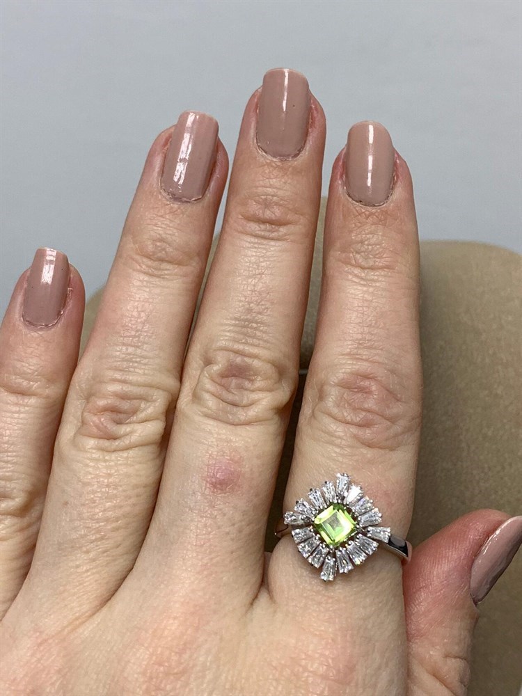*Кольцо р.18,5 Хризолит арт. SM-R02900-X-W-S-X-X-876 вес 6,85 г