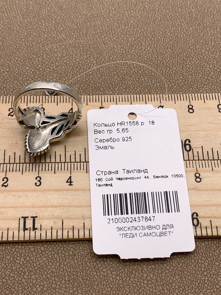*Кольцо р.19 Крыло Бабочки Марказит Корунд Рубин Эмаль арт. HR725-059 вес 7,69 г