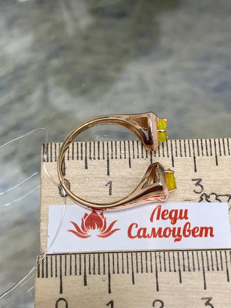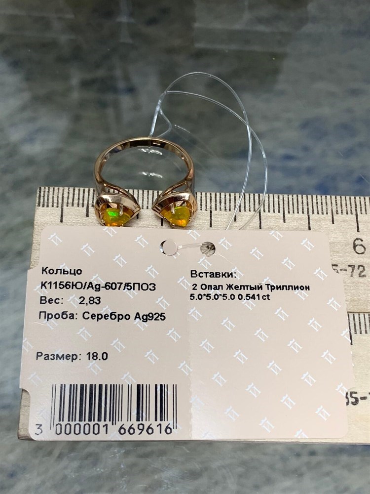 *Кольцо р.18 Желтый Опал Эфиопия арт. К1156Ю/Ag-607/5ПОЗ-616 вес 2,83 г