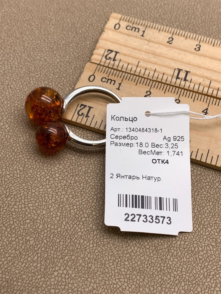 *Кольцо р.18 Шары Янтарь арт. 1340484318-1-573 Вес 3,25 г