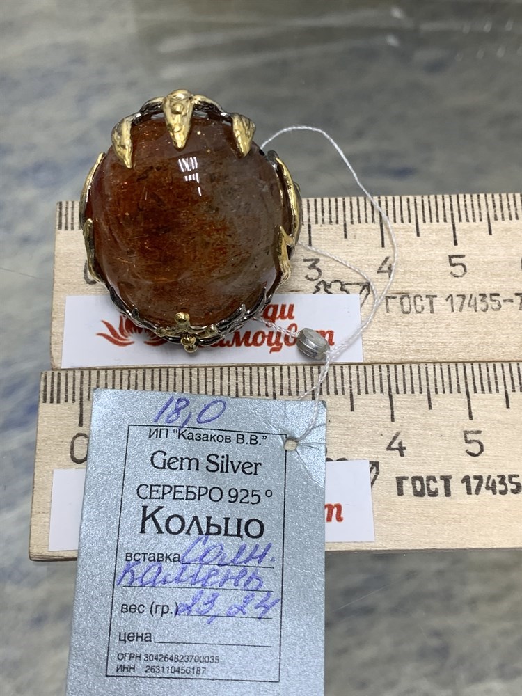 *Кольцо р.17,5 Солнечный камень Гелиолит АРТ 52777 (ВЕС 14,37 Г)