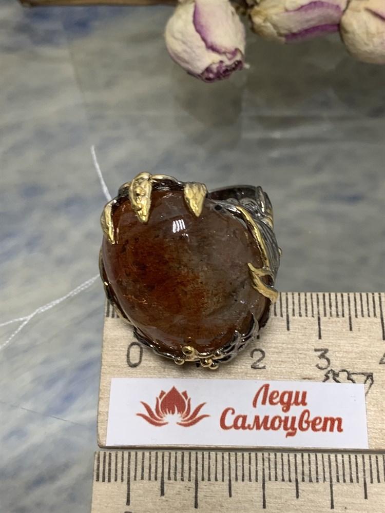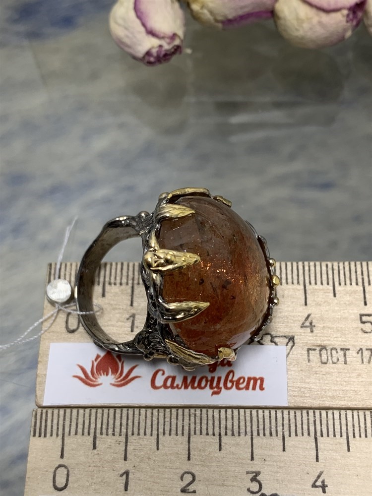 *Кольцо р.18 Солнечный камень Гелиолит Африка АРТ 49020 (ВЕС 23,24 Г)