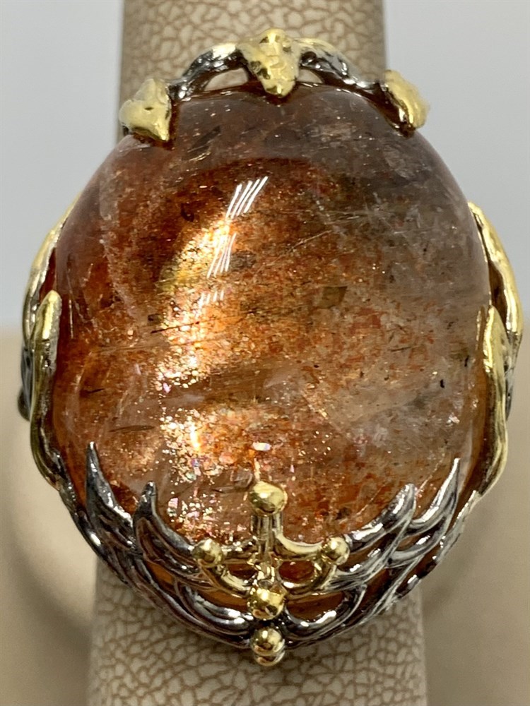 *Кольцо р.19,5 Солнечный Камень Гелиолит США АРТ 36301 (ВЕС 13,3 Г)