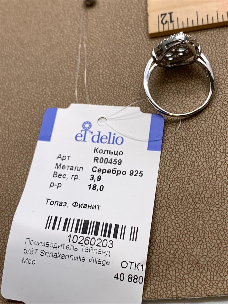 *Кольцо р.18 Голубой Топаз арт. R00459-203, (вес 3,9 г)