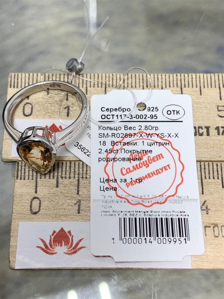 *Кольцо р.18 Цитрин арт. SM-R02896-X-W-YS-X-W-571 вес 3,07 г