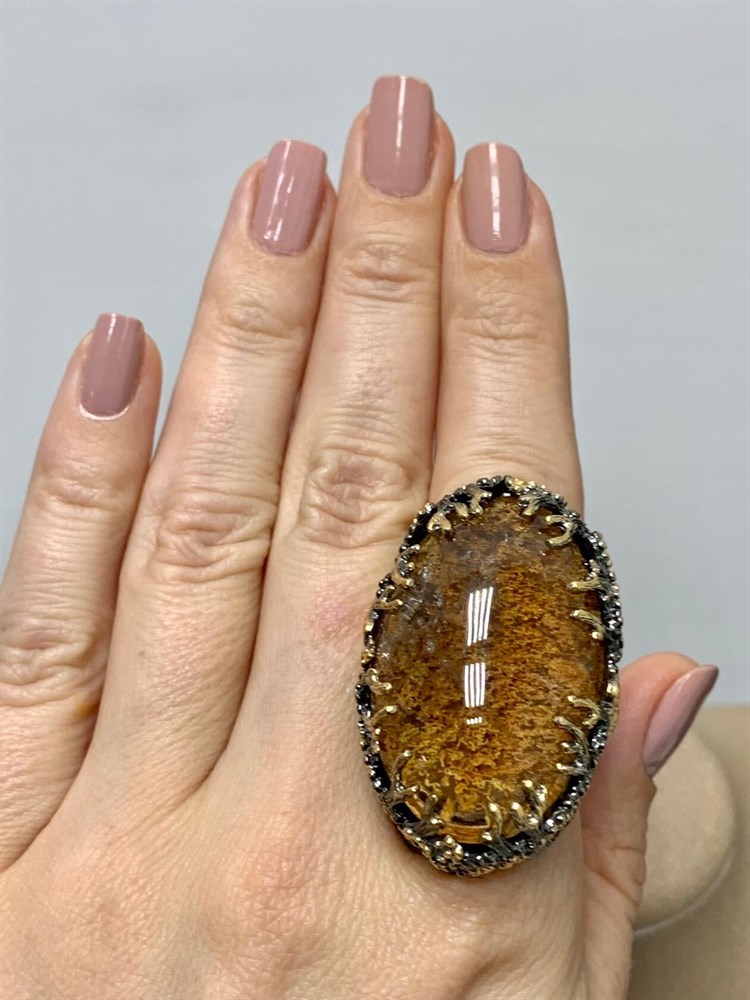 *Кольцо р.19,5 Лодолит Кварц Аквариум Бразилия АРТ 52774 (ВЕС 35,98 Г)