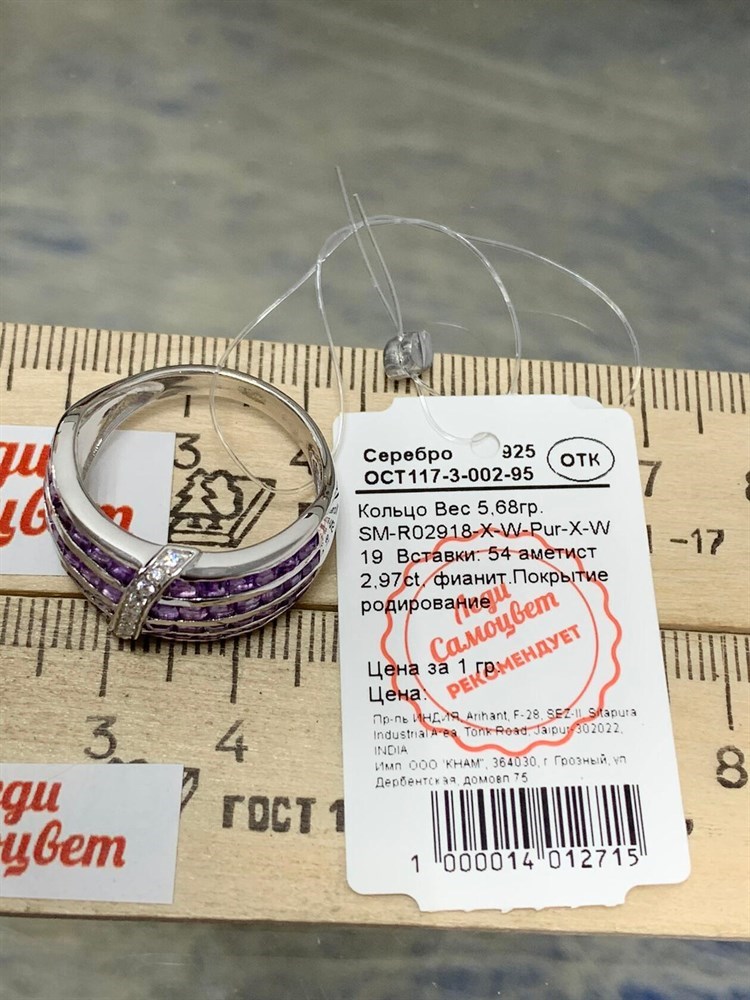 *Кольцо р.19 Аметист арт. SM-R02918-X-W-Pur-X-W-112 вес 5,68 г
