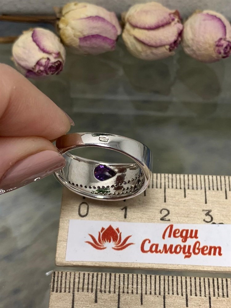 *Кольцо р.17 Фиалка Аметист арт. AS-R06598-X-W-Pur-X-W-258 вес 4,11 г