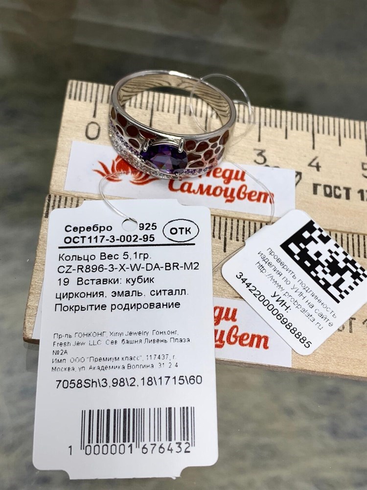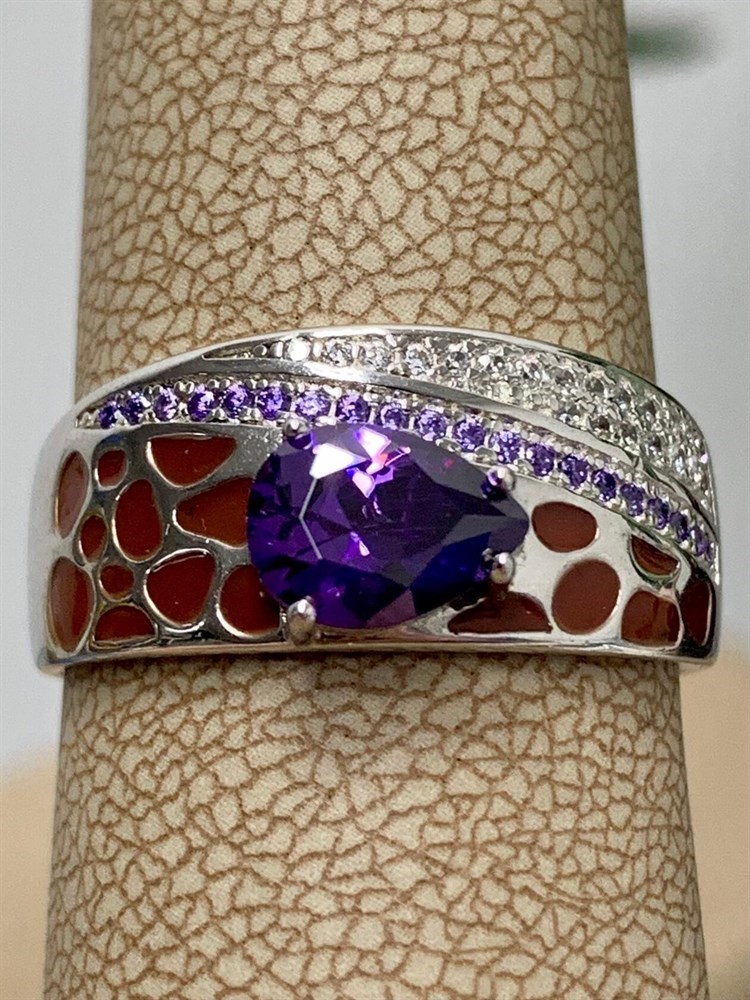 *Кольцо р.19 Микс Аметист синт Эмаль арт. CZ-R896-3-X-W-DA-BR-M2-885 вес 5,1 г