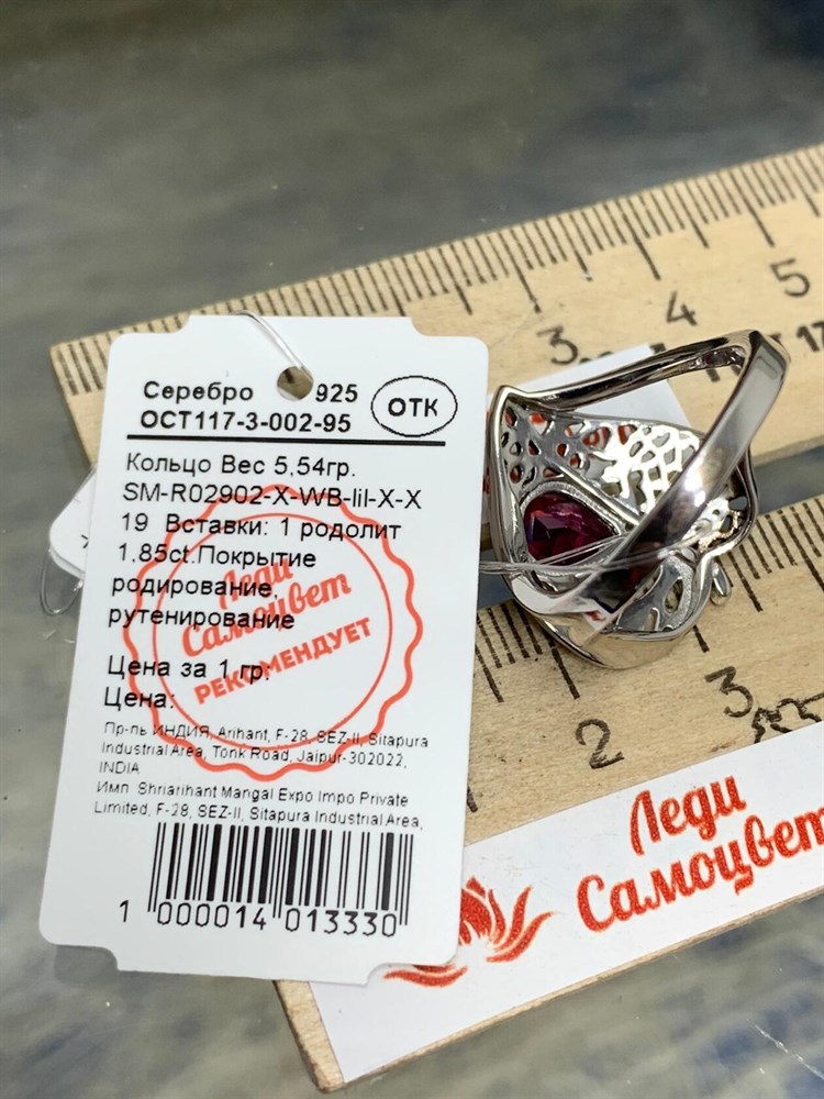 *Кольцо р.19 Родолит арт. SM-R02902-X-WB-lil-X-X-429 (вес 5,54 г)