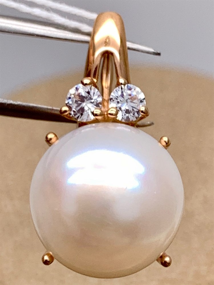 *Кулон Белый Жемчуг д.12-12,5 цв Красное арт. 3.0832.0.b-914 Вес 3,87 г
