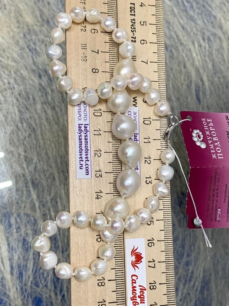 *Ожерелье р.40 д.7*8 д.13*15 Белый Жемчуг Барокко арт. 810800800506.040-255