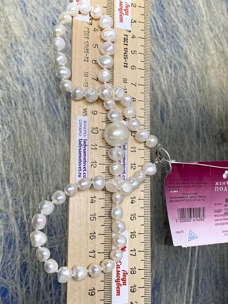 *Ожерелье р.45 д.6*7 д.13*15 Белый Жемчуг Барокко арт. 810700470507.045-863