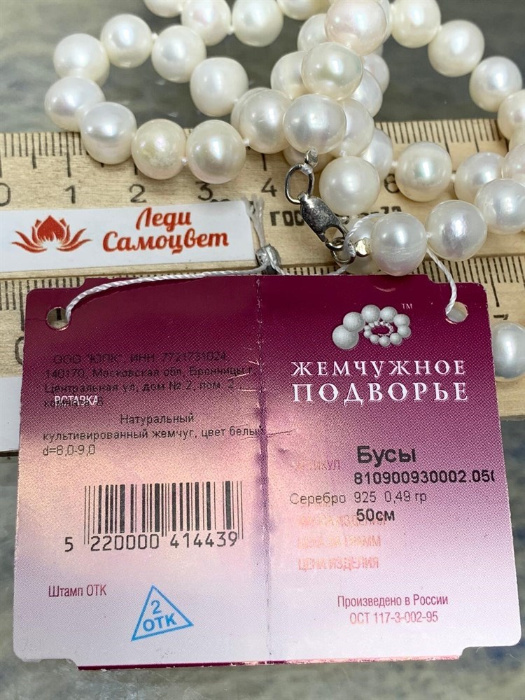 *Ожерелье р.50 д.8*9 Белый Жемчуг арт. 810900930002.050-439