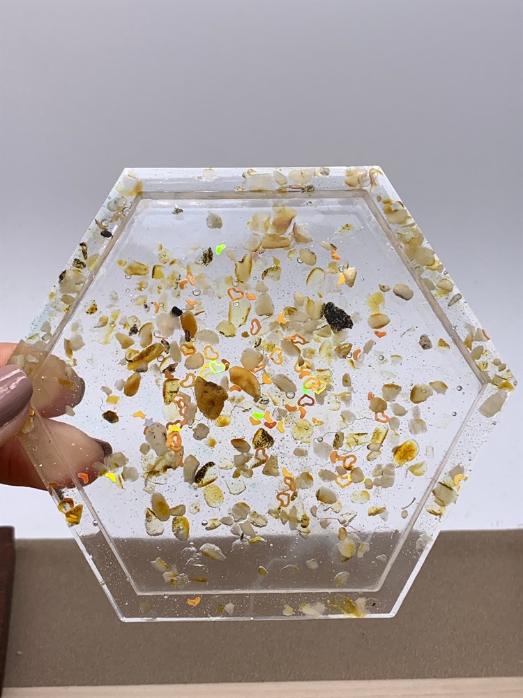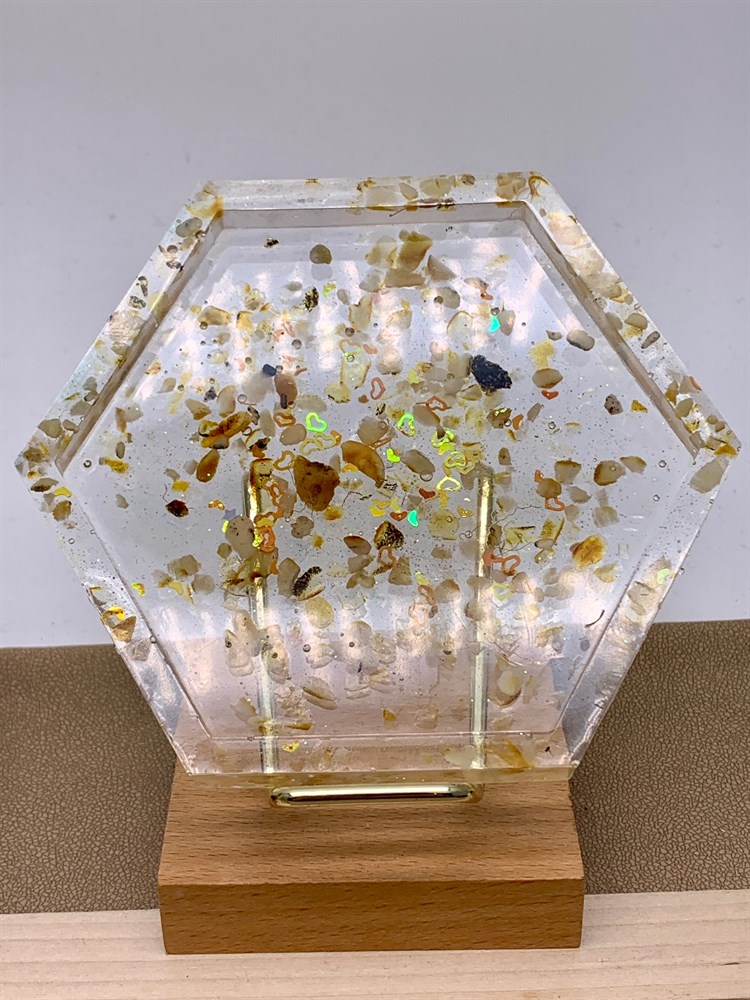 Поднос с янтарем р.10,5-10,5-1,5 см арт 090625 вес 80,69 гр Украшение для интерьера Ручная работа
