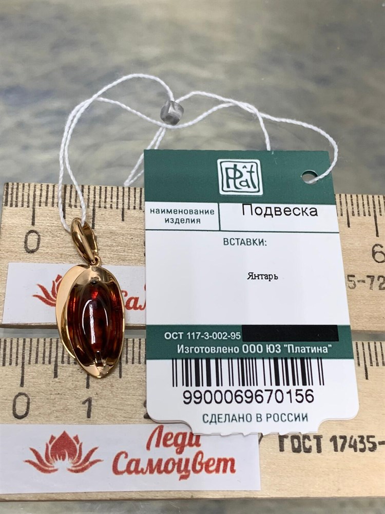 *Подвеска Янтарь цв Красное арт. 03-2824-00-271-1110-46-845 вес 1,91 г