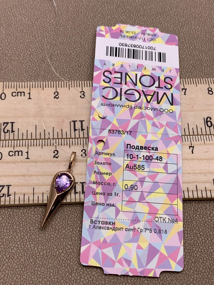 *Подвеска Александрит синт. цв Красное арт. 10-1-100-48-630 вес 0,9 г