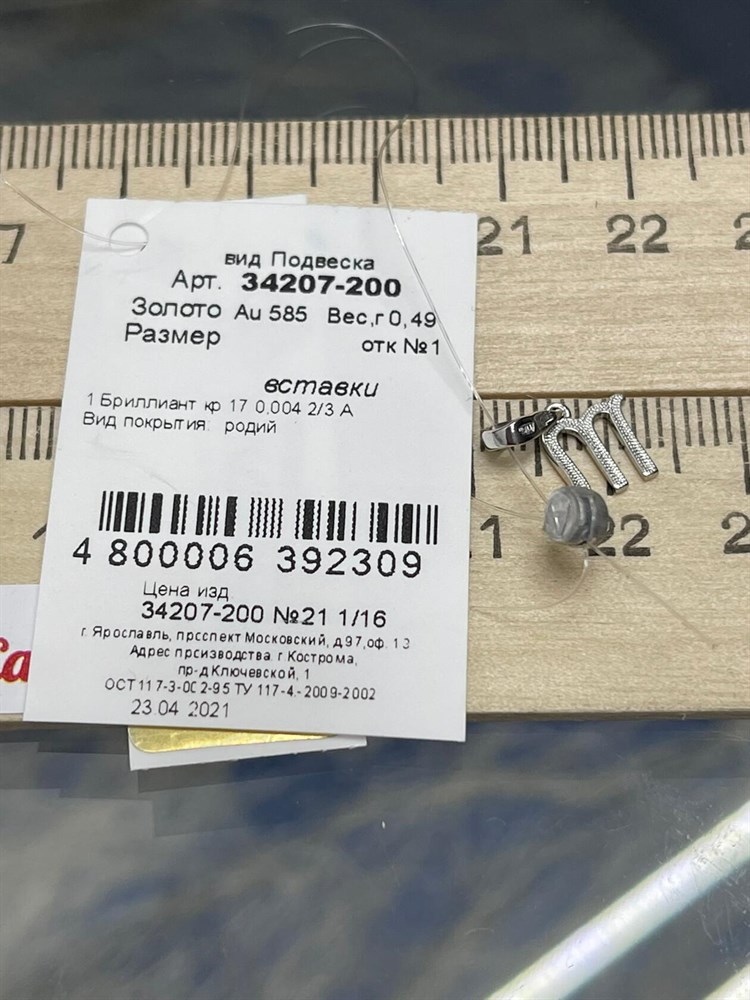 *Подвеска Овен Белый Бр цв Белое арт. 34218-200-561 вес 0,45 г