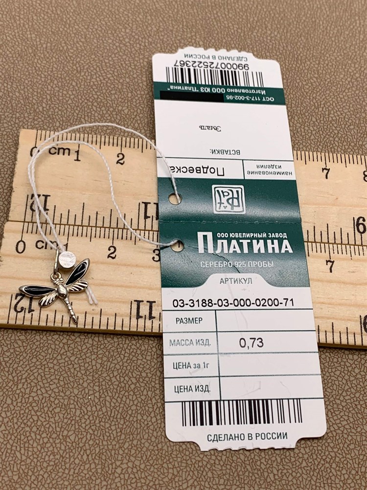 *Подвеска Стрекоза Эмаль Черная арт. 03-3205-00-000-0200-71-645 вес 1,23 г