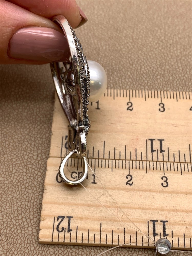 *Брошь-Кулон Шляпа Микс Марказит Жемчуг арт. HB605-982 вес 12,39 г