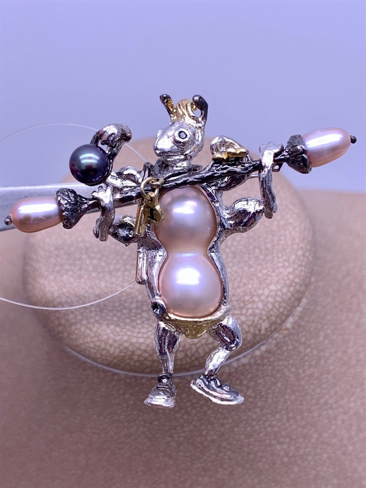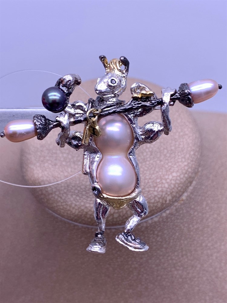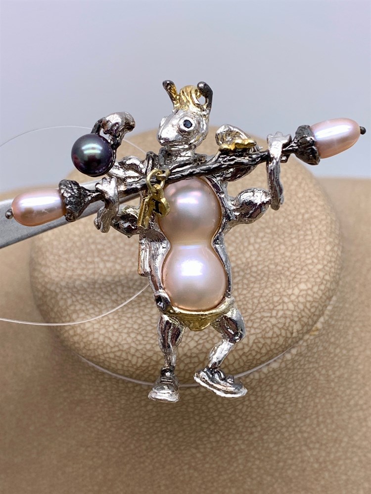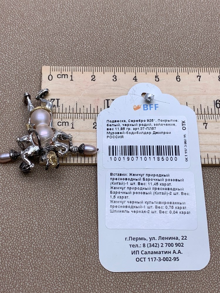 *Подвеска Розовый Жемчуг Барокко Муравей Джирлой арт 37-ПЛ57-1001907101185000 Вес 11,85 г